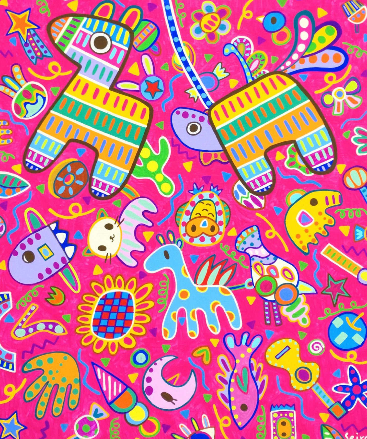 カラフルな色使いと個性的な表現で、「感謝」「喜び」「祝福」などのポジティブなメッセージ性を込めた作品を多く制作。『想い』を形にして絵描きます。